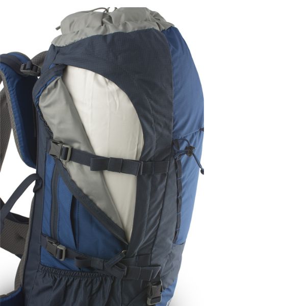 Καλά αεριζόμενο και εξαιρετικά ρυθμιζόμενο σακίδιο. Διαθέτει δυνατότητα προσαρμογής του ύψους της πλάτης. Έχει ρυθμιζόμενους ιμάντες ώμου . Δύο ενσωματωμένες πλαϊνές τσέπες, με πλευρική είσοδο με φερμουάρ στο κυρίως διαμέρισμα. Μεγάλη εσωτερική πίσω τσέπη, μία εξωτερική και μία εσωτερική τσέπη στο κάλυμμα που μπορεί να αφαιρεθεί επίσης. Κεντρικός ιμάντας συμπίεσης κάτω από το κάλυμμα για τη στερέωση του σχοινιού.