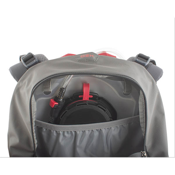 Έξοδος του σωλήνα του ασκού στο πάνω μέρος του σακιδίου πλάτης, μεταξύ των ιμαντων ώμου.